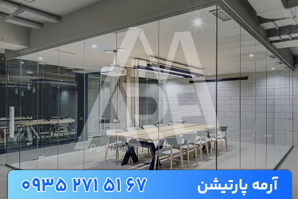 یکی از شیکترین انواع پارتیشن است که ظاهری کاملاً شفاف و مینیمال ایجاد میکند. این مدل بیشتر در طراحیهای لوکس و مدرن استفاده میشود.